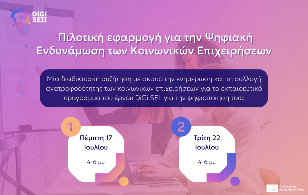 DIGI SEII: Πιλοτική Δράση για την Ψηφιακή Ενδυνάμωση Κοινωνικών Επιχειρήσεων