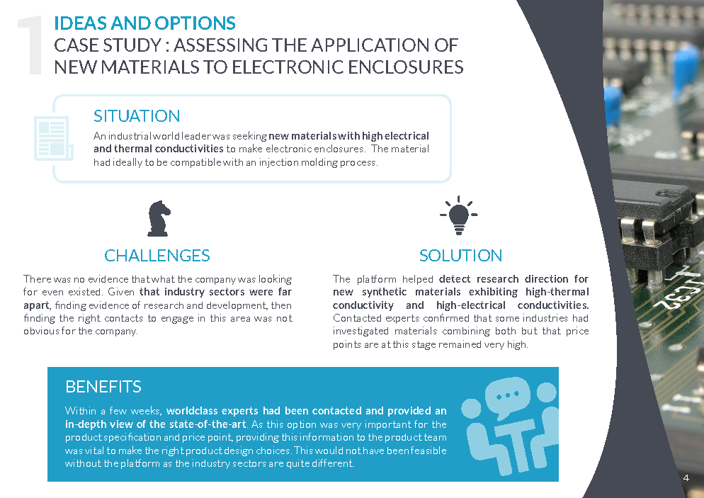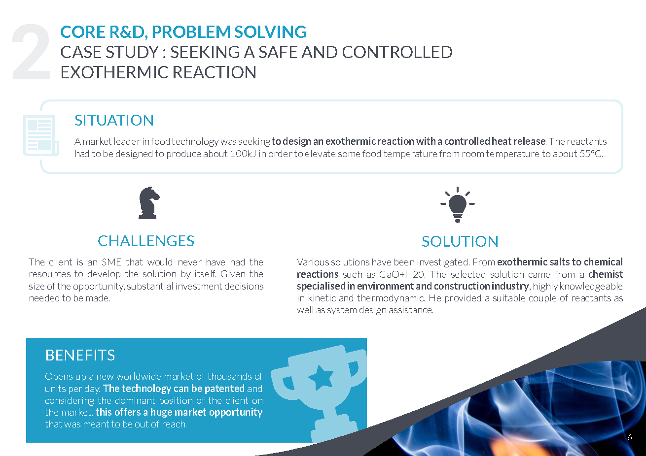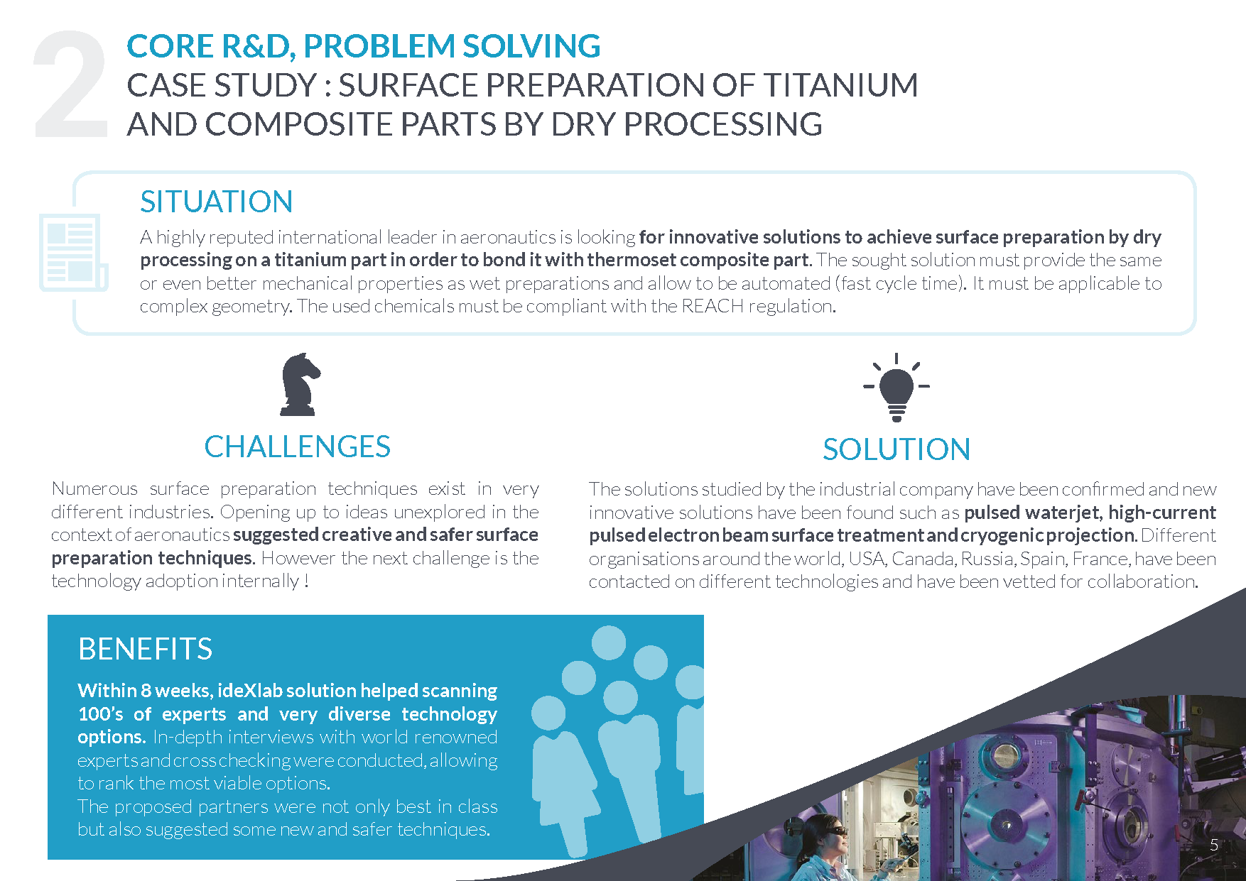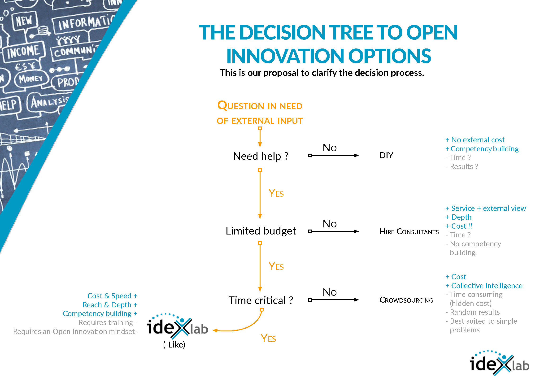 - The need to solve a technological or scientific issue for which the company does not have the competence and will seek external expertise (another form of “outside-in“).