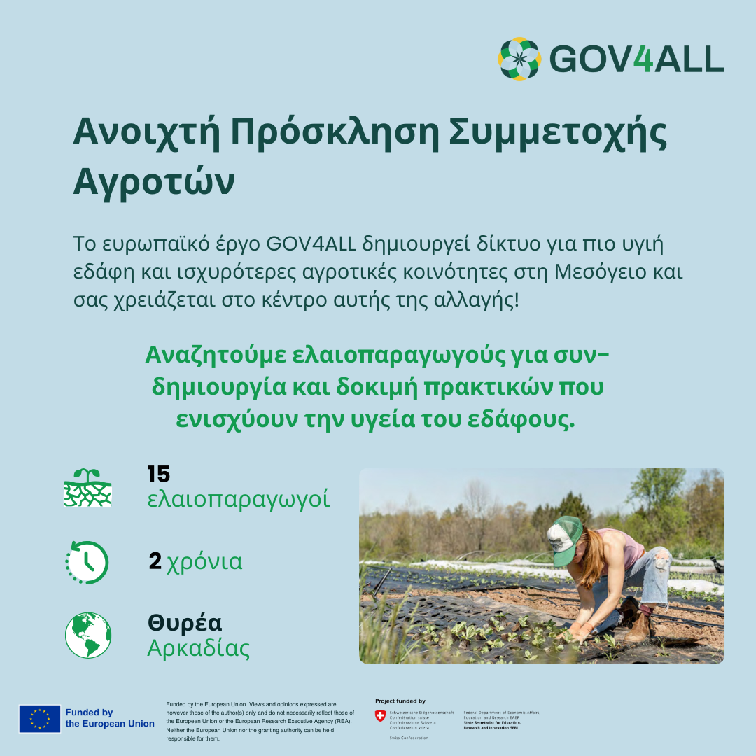 Ανοιχτή Πρόσκληση Συμμετοχής Αγροτών Πρόσκληση για συν-δημιουργία και δοκιμή πρακτικών που ενισχύουν την υγεία του εδάφους Σε ολόκληρο τον κόσμο, τα [...]